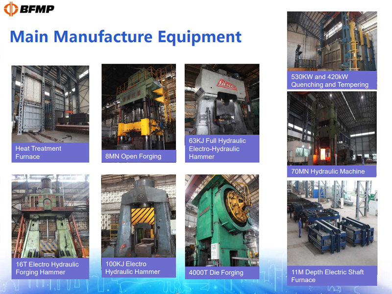BFMP mainly offers all kinds of high quality casting and forging products for shipbuilding, aerospace, water conservancy and hydropower, mining metallurgy, petrochemical, marine engineering. nuclear equipment and other field, such as large and medium-sized marine shafting, key parts of diesel engine, propeller, large diameter thickwall sermless pipe, metallurgical roll, medium and high-end die steel, nuclear power forging, marine engingeering equipment and other high-quality casting and forging products, As well as large-scale artistic products and non- standard complete sets of equipment.