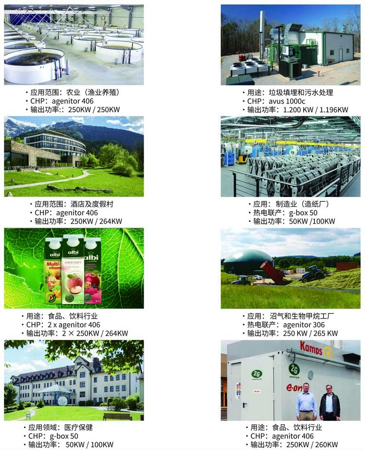 農(nóng)業(yè)、機場、啤酒廠、食品工業(yè)、溫室、雜貨店、醫(yī)院和護理設(shè)施、垃圾填埋場、工業(yè)與制造業(yè)、制藥設(shè)施、酒店及度假村、大學(xué)、廢水處理廠、微電網(wǎng)熱電聯(lián)產(chǎn)、可再生天然氣設(shè)施等。