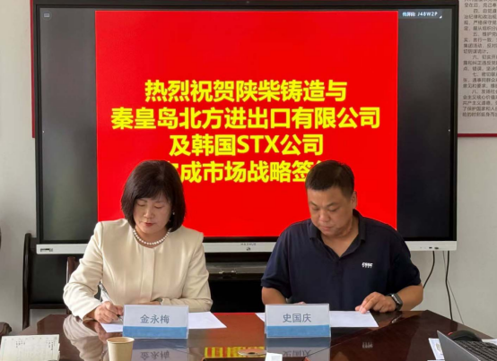 2025年5月16日,秦皇島北方公司副總經(jīng)理金永梅與CSSC陜柴鑄造部副總經(jīng)理史國(guó)慶正式簽訂韓國(guó)市場(chǎng)戰(zhàn)略合作協(xié)議!這標(biāo)志著雙方的合作進(jìn)入了一個(gè)新的臺(tái)階,也意味著北方公司在海外市場(chǎng)的發(fā)展邁出了堅(jiān)實(shí)的一步。