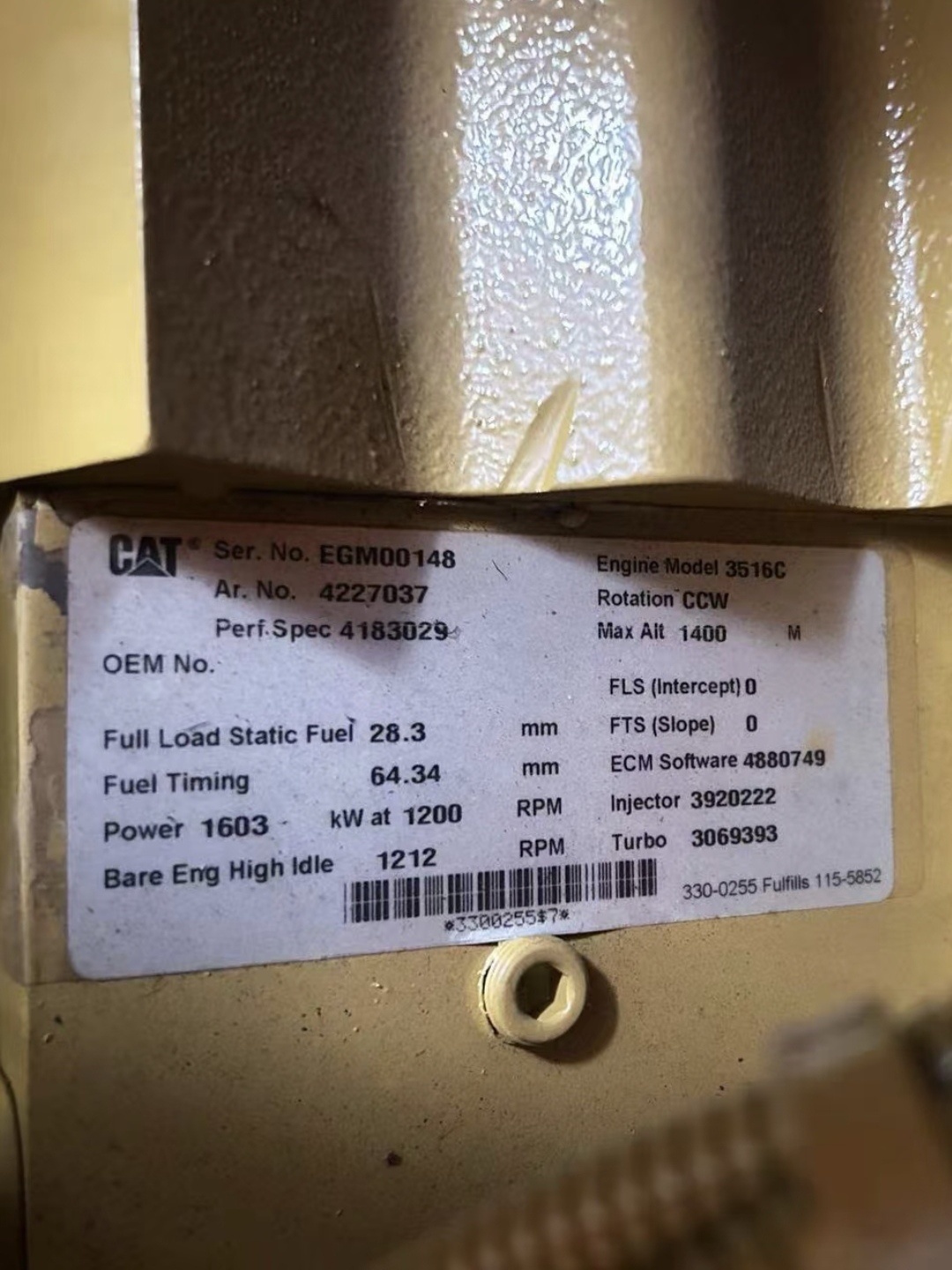 CAT 3516C發(fā)電機(jī)組5臺(tái)待售,2016年產(chǎn),可用于陸用電站,具體參數(shù)詳情如下: