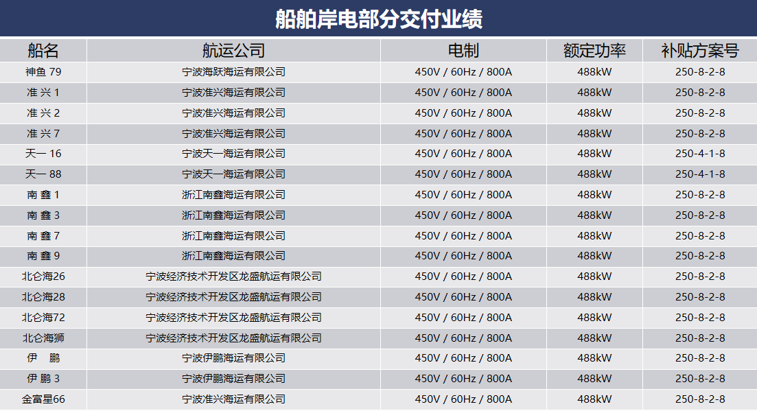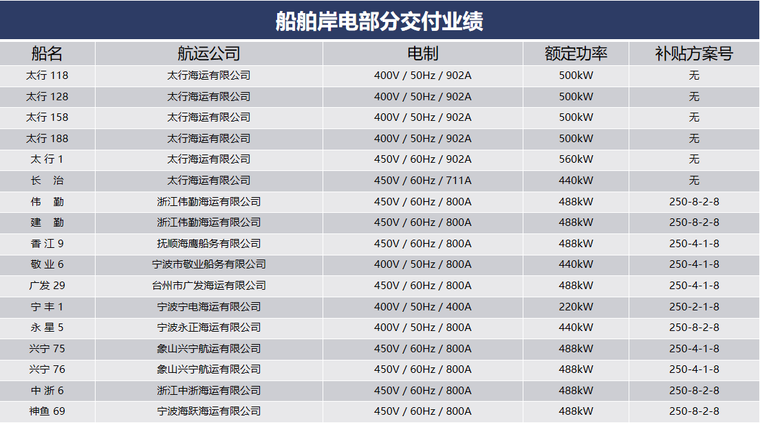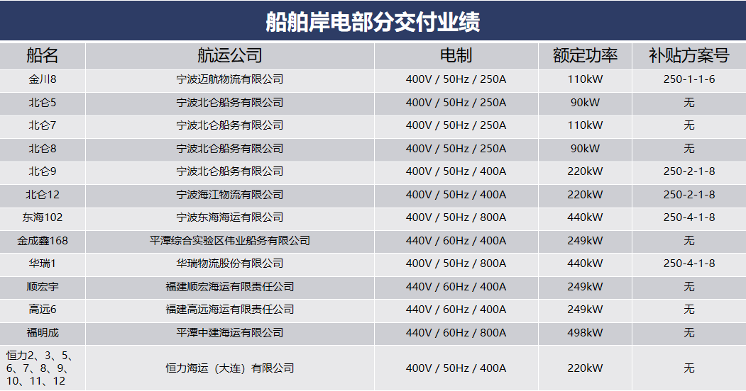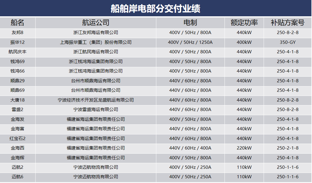 陸用電站業(yè)績 裝機(jī)件業(yè)績 造船業(yè)績 海洋石油業(yè)績 岸電業(yè)績 油改氣業(yè)績